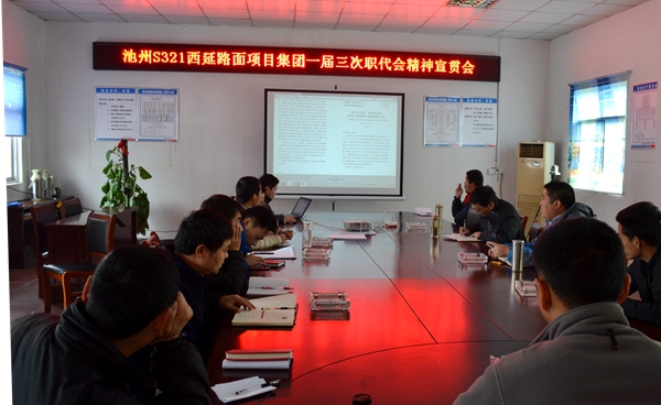 1月15日,在公司的統(tǒng)一部署下,路面公司各項目組織召開集團一屆三次職代會精神宣貫會,集中學(xué)習(xí)傳達會議精神,認真分析當(dāng)前各項目生產(chǎn)面臨的形勢任務(wù),精心謀劃新一年的工作。