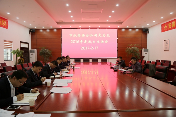 2月17日上午,市政分公司黨總支組織召開2016年度民主生活會。公司黨委委員、副總經(jīng)理任杰出席會議并作重要講話,黨委辦公室副主任王介出席會議,市政分公司黨總支書記劉振嶺主持會議。