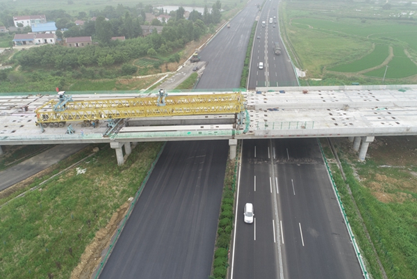 上跨G3京臺高速分離立交橋為涉高速施工,所跨路段日均車流量達五萬多輛,并與正在進行的高速改擴建瀝青攤鋪交叉施工,需要在規(guī)定的半幅封閉時間內(nèi)完成上跨梁板架設任務,施工環(huán)境復雜,組織難度較大。經(jīng)過多次專家論證,項目不斷優(yōu)化施工方案,并堅持責任到人,狠抓時間節(jié)點,有效克服了各項困難,梁板架設有序推進,順利實現(xiàn)了上跨高速橋的順利合龍。