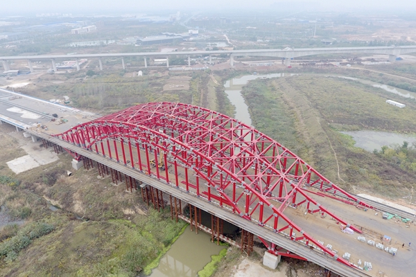 集賢路項目跨派河鋼桁拱橋順利合龍