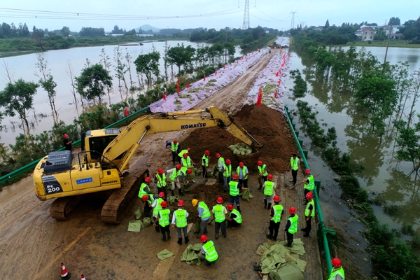 【抗洪搶險(xiǎn)進(jìn)行時(shí)】安徽路橋徽州大道抗洪搶險(xiǎn)隊(duì)晝夜奮戰(zhàn) 搶通防汛通道