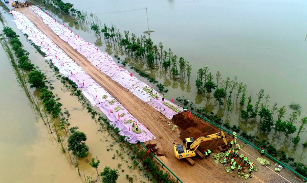 7月23日下午5時(shí),石頭鎮(zhèn)水位上漲迅猛,廬江縣重要防汛通道X092線150米漫水公路淹沒(méi),嚴(yán)重威脅當(dāng)?shù)厝罕娚钜约胺姥闯鲂小;罩荽蟮理?xiàng)目迅速行動(dòng),組織人員70余人,機(jī)械數(shù)十臺(tái),挖土2000方,裝填沙袋5000只,構(gòu)筑起兩道安心墻。