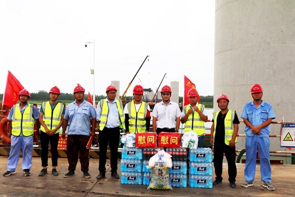 太陽炙烤著大地,體感溫度逼近40℃。面對(duì)高溫?zé)崂?,?xiàng)目多措并舉,全力做好現(xiàn)場(chǎng)施工安全保障關(guān)。每日安排送清涼,采購西瓜、綠豆、白糖、礦泉水及防暑降溫藥品發(fā)放到一線工人手中。同時(shí),加強(qiáng)暑期安全施工技能培訓(xùn),實(shí)施“白+黑”錯(cuò)峰上崗,全力保障生產(chǎn)安全。
