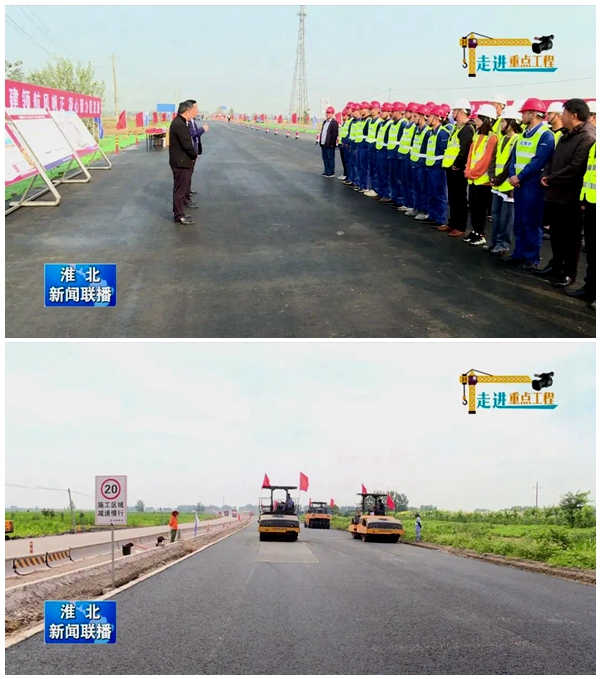 近日,淮北市新聞聯(lián)播“走進重點工程”系列報道播發(fā)了G237二期工程主體完工、全線通車的新聞,對項目部克服疫情影響、提前計劃工期近五個月完成重大節(jié)點目標給予肯定。