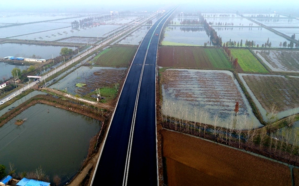 阜南S305項(xiàng)目瀝青攤鋪圓滿完成