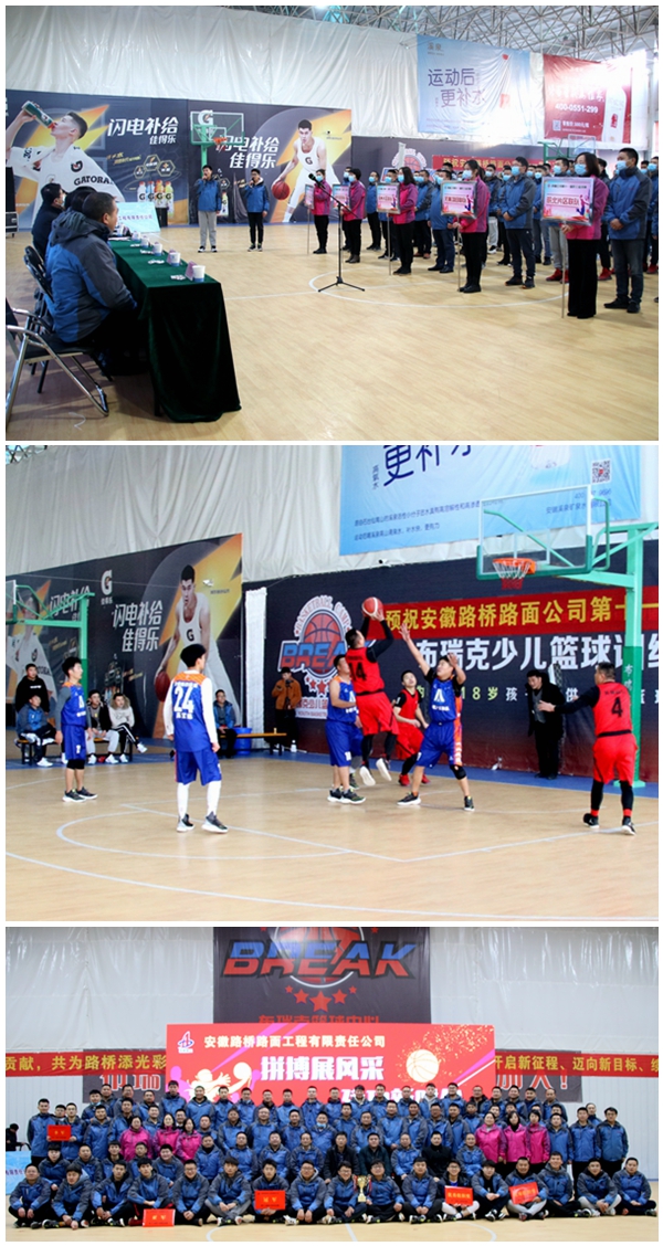為豐富職工文化生活,增進(jìn)職工溝通交流,促進(jìn)企業(yè)文化建設(shè),提高團(tuán)隊(duì)凝聚力,12月30日至31日,安徽路橋路面公司第十一屆職工籃球賽在合肥布瑞克籃球館成功舉辦。公司黨委委員、紀(jì)委書記林緒坤,工會(huì)主席楊建強(qiáng)出席開幕式。