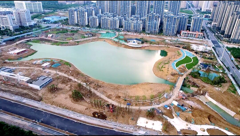 8月1日下午,記者來到該公園項目建設現(xiàn)場看到,工程車輛來回穿梭,各種機械設備正在緊張作業(yè),工人們有的在公園東南角區(qū)域進行地面鋪磚、綠化,有的在水庫西側(cè)架設游樂設施。據(jù)施工現(xiàn)場負責人介紹,項目目前每天有近200人施工,他們采取錯峰施工、備齊備足防暑物資等措施,確保工人們在高溫天氣里安全施工;現(xiàn)階段,公園既定各項工程節(jié)點已全部完成,園區(qū)內(nèi)硬質(zhì)景觀工程完成60%,綠化工程完成50%。