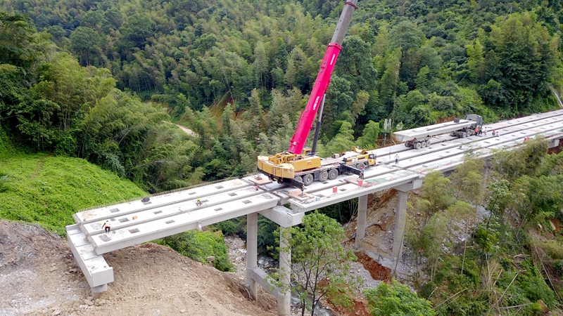 據(jù)了解,楊公山大橋位于遂川縣巾石鄉(xiāng)境內(nèi),分為右線和右外線,右線橋長(zhǎng)140米,右外線橋長(zhǎng)180米,共計(jì)60多片箱梁。為確保該橋梁板順利架設(shè),項(xiàng)目部針對(duì)施工特點(diǎn)、難點(diǎn)和重點(diǎn)及時(shí)做好安全技術(shù)交底工作,在施工過程中,項(xiàng)目部動(dòng)態(tài)優(yōu)化資源配置,采用了3臺(tái)炮車及2臺(tái)吊車同時(shí)進(jìn)行運(yùn)輸和架設(shè)作業(yè),克服了工期緊、運(yùn)梁路線長(zhǎng)等不利因素影響,順利地完成了架設(shè)任務(wù)。