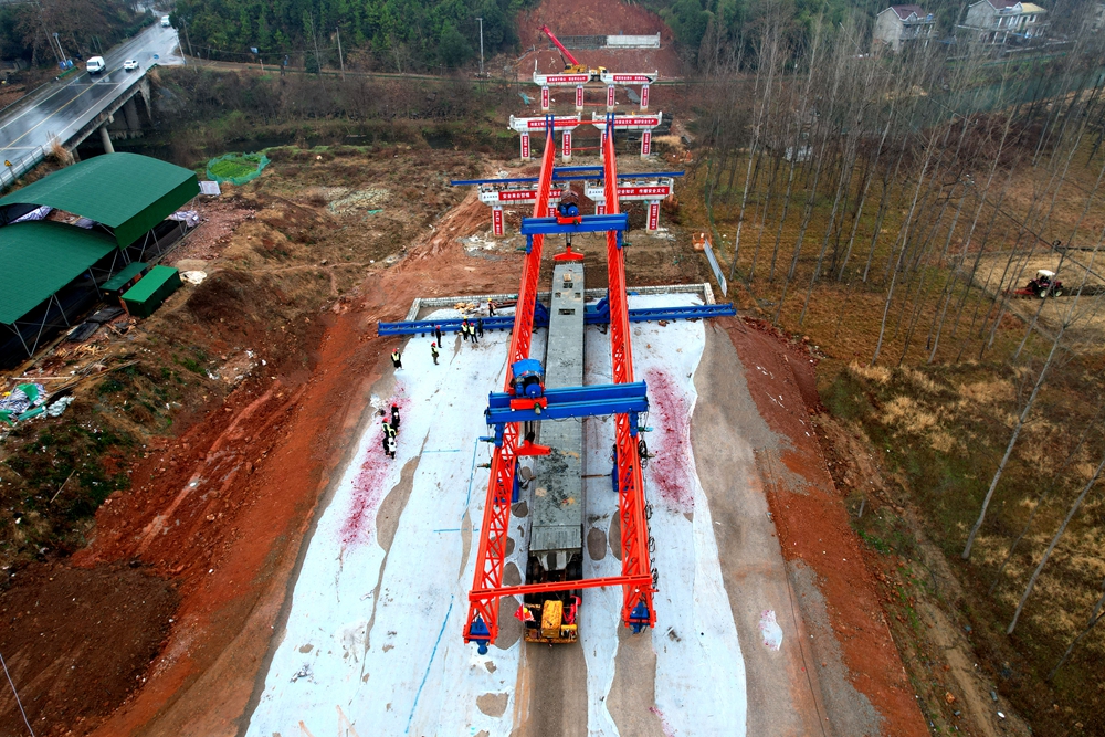 12月18日,G329孫埠至大汪村一級公路改建工程首片箱梁順利架設。