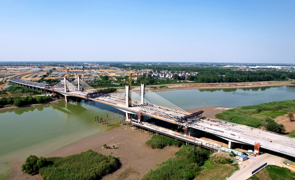 【路橋“競”行時】G206-03標(biāo)渦河八橋首個邊跨順利合龍