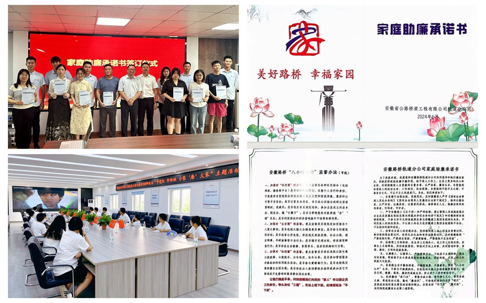 在各項目家庭助廉活動中,員工和家屬共同觀看了《我是張清廉》、《清廉潤家風,當好廉內助》、《爸爸的話》等廉潔微電影和公司《寄語送清風 廉潔伴我行》欄目優(yōu)秀作品。同時,各項目還向每個職工家庭發(fā)放了《家屬助廉承諾書》,大家踴躍寫下承諾,表示要和分公司一道擰緊廉潔“安全閥”,幫助我們共同的家人走正道、揚正氣,當好一名廉潔自律的路橋人。