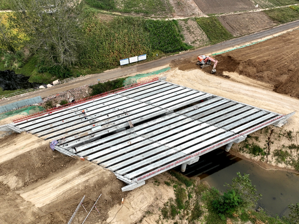 隨著最后一片梁板精準(zhǔn)落位,徐淮阜高速亳州段路基02標(biāo)主線橋梁板架設(shè)任務(wù)順利完成,項目主線橋全面進(jìn)入橋面系及護(hù)欄施工階段。