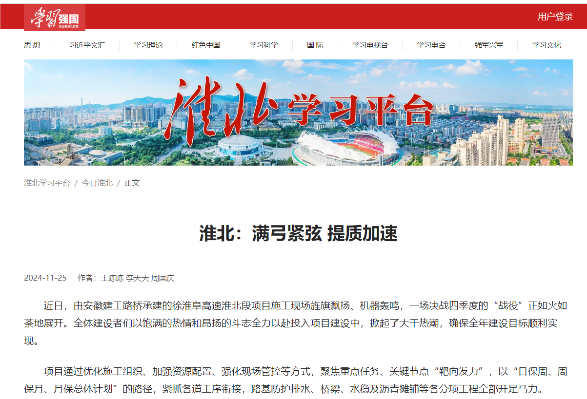【名媒聚焦】安徽日?qǐng)?bào)客戶端、學(xué)習(xí)強(qiáng)國(guó)、淮北日?qǐng)?bào):決戰(zhàn)年終!徐淮阜高速建設(shè)加速?zèng)_刺