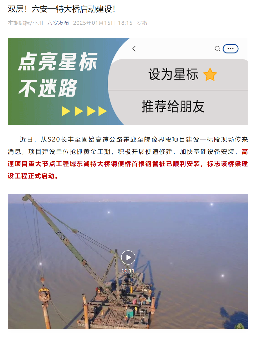 近日,由安徽建工投資建設(shè)的S20長固高速路基01標橋梁建設(shè)正式啟動,受到安徽衛(wèi)視、中安在線、六安發(fā)布等省市主流媒體的關(guān)注報道。