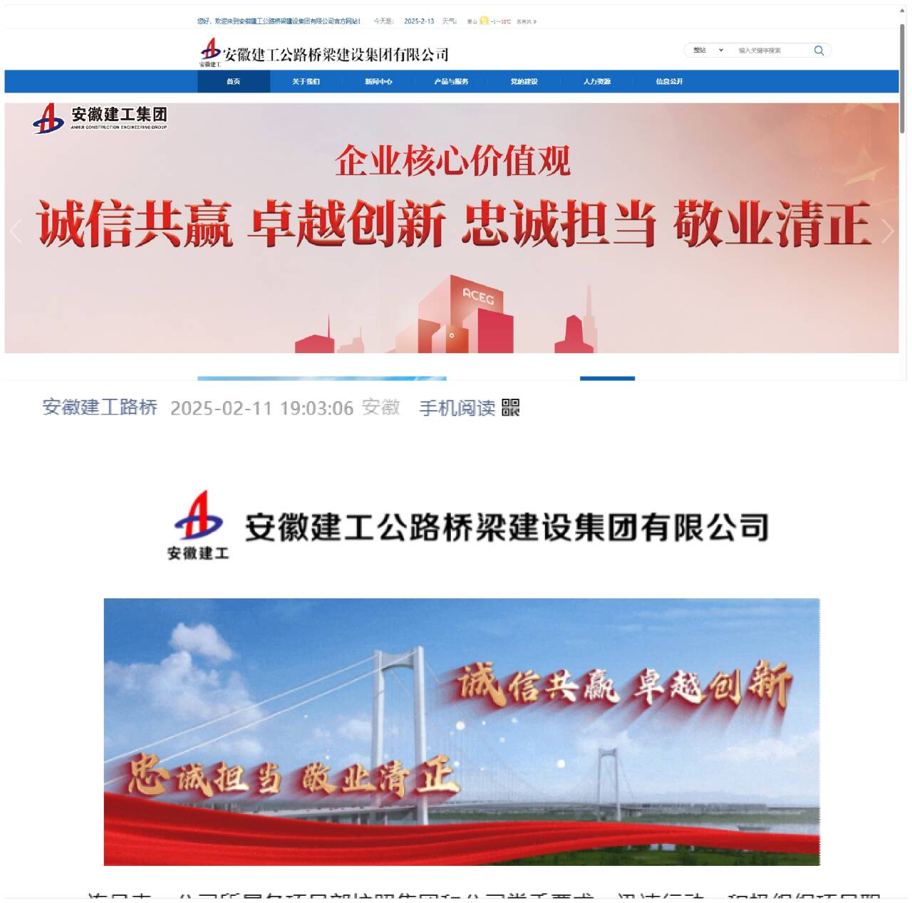 建工路橋黨委高度重視集團(tuán)核心價(jià)值觀學(xué)習(xí)宣傳貫徹工作,通過(guò)“三個(gè)迅速”舉措,掀起學(xué)習(xí)宣傳貫徹執(zhí)行熱潮。