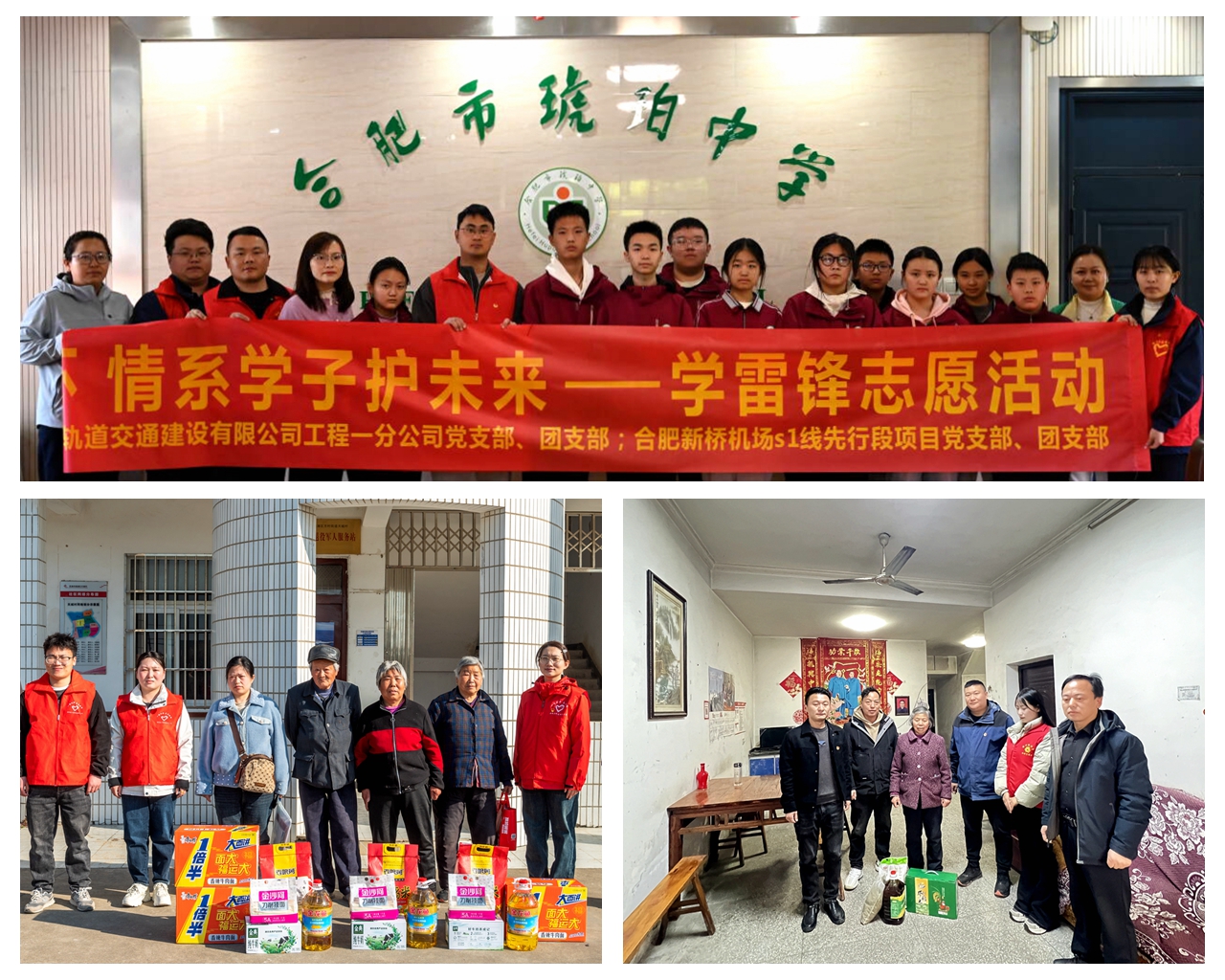 為弘揚(yáng)雷鋒精神,用行動(dòng)傳遞社會(huì)溫情,所屬各項(xiàng)目團(tuán)支部前往敬老院、學(xué)校等地開(kāi)展慰問(wèn)活動(dòng)。S334峨山路東延伸新建二期工程項(xiàng)目為周邊村莊貧困老人送去米、油等生活物資;合肥新橋機(jī)場(chǎng)S1線先行段項(xiàng)目走進(jìn)合肥市琥珀中學(xué)龍居山莊校區(qū)開(kāi)展愛(ài)心捐贈(zèng)活動(dòng),為學(xué)校貧困學(xué)子捐贈(zèng)了嶄新校服;S22天天高速YQB2標(biāo)組織開(kāi)展雷鋒月主題活動(dòng),走進(jìn)老黨員家中,與老黨員們親切交談,關(guān)切詢問(wèn)他們的身體狀況和生活情況,聆聽(tīng)他們講述過(guò)去的奮斗故事。