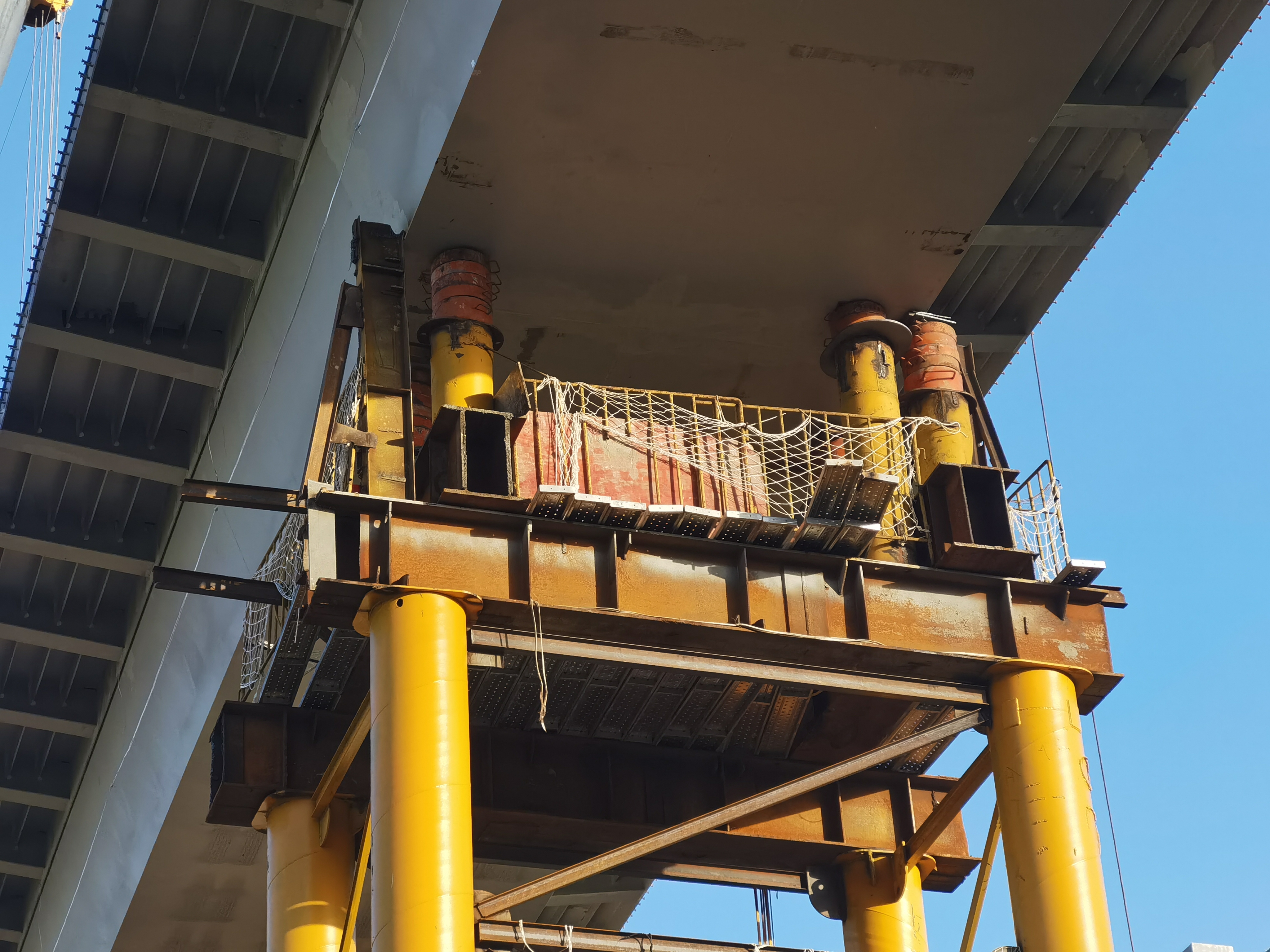上跨既有線(xiàn)大縱坡曲線(xiàn)段鋼箱梁智能頂推施工技術(shù),研發(fā)采用滑動(dòng)步進(jìn)式智能頂推施工,研制了鋼箱梁頂推千斤頂側(cè)向就位滑道,并提出了鋼箱梁預(yù)制混凝土護(hù)欄組合頂推施工技術(shù),保障了頂推鋼箱梁的精準(zhǔn)就位及施工安全,全面提升了施工效率,確保節(jié)點(diǎn)工期目標(biāo)順利實(shí)現(xiàn)。