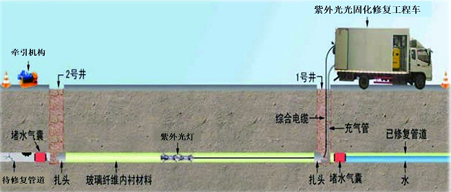 紫外光固化管道修復(fù)技術(shù)為城市雨污水管網(wǎng)改造帶來(lái)全新方案探索。將特制軟管材料浸漬光固化樹(shù)脂后拉入舊管道,在紫外光照射下迅速固化形成高強(qiáng)度內(nèi)襯管,無(wú)需開(kāi)挖路面,極大減少施工擾民與環(huán)境破壞。在新站區(qū)排水管網(wǎng)排查整治完善工程一期-1標(biāo)順利實(shí)現(xiàn)了安徽省內(nèi)最大管徑管道紫外光固化修復(fù)。