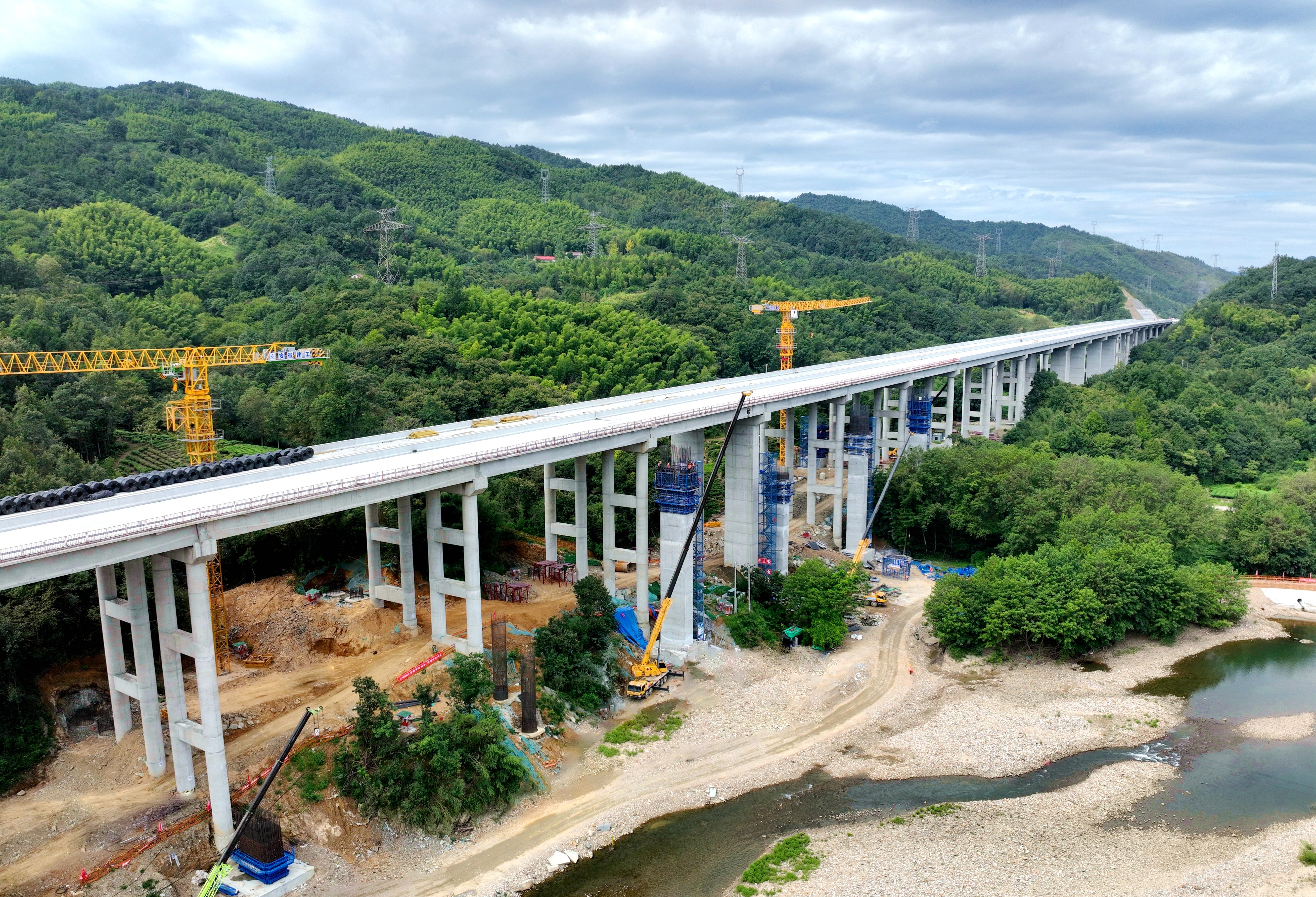 青山樞紐是項目起點,與在建的和襄高速(六安段)連接,肩負(fù)著兩條高速“牽手”的使命。新建樞紐由5座匝道橋和1座拼寬橋組成,均為高墩柱、大跨徑橋梁,其中A、C兩條匝道需要對和襄高速十里溪大橋拼寬施工。項目技術(shù)負(fù)責(zé)人孫維龍告訴記者,“和襄高速預(yù)計2025年底實現(xiàn)全線通車,該樞紐也要在年底前完成橋梁主體結(jié)構(gòu)施工”。