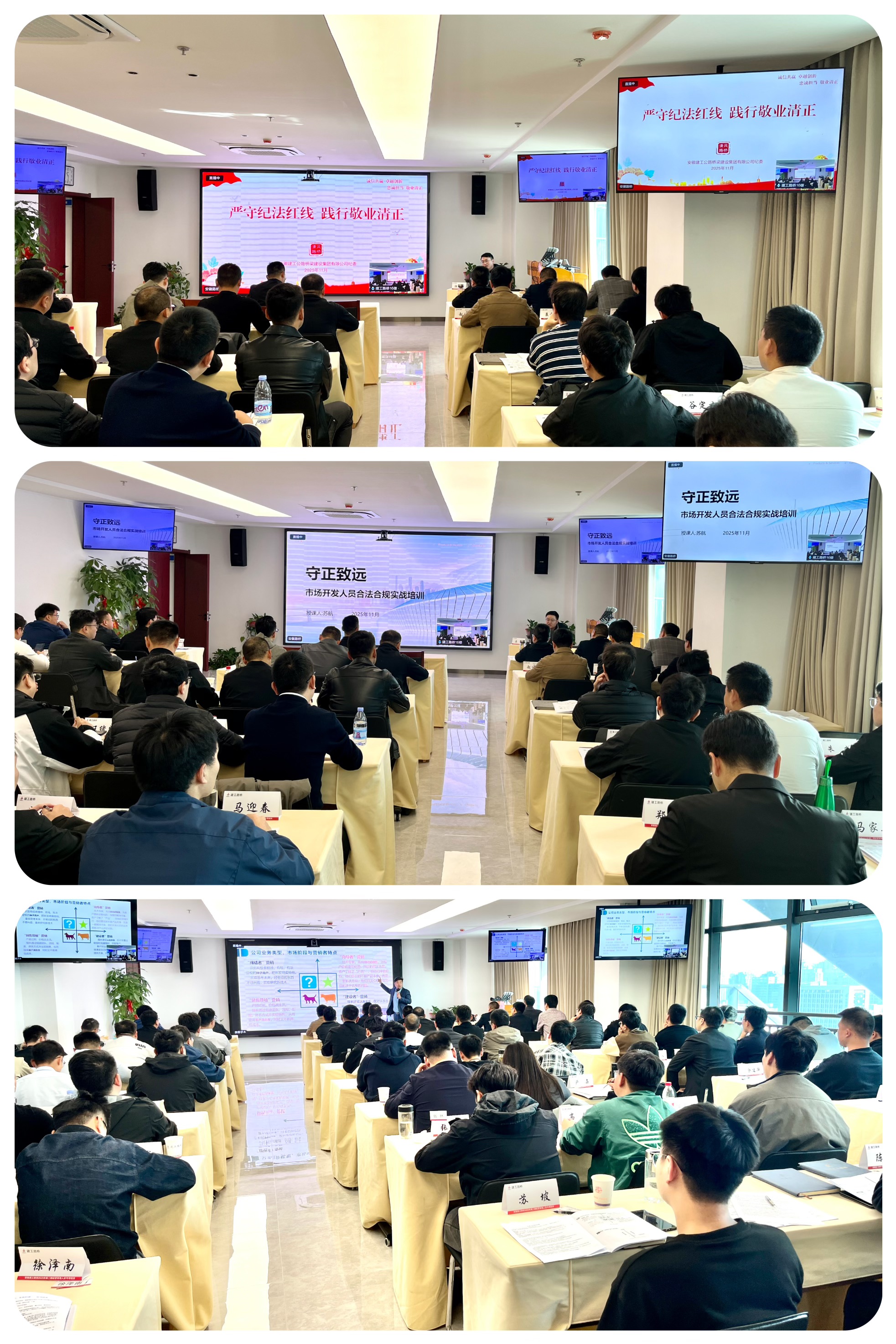 緊隨其后的《工程營銷法律專項培訓》與《工程營銷廉潔風險防范》課程,則為火熱的市場開拓注入了冷靜的理性與堅實的底線思維。法律培訓聚焦合同、招投標等關(guān)鍵環(huán)節(jié)的法律風險識別與防范,強化合規(guī)意識;廉潔風險課程則深刻剖析了營銷工作中的潛在廉潔風險點,敲響警鐘,教育學員務必恪守職業(yè)道德,筑牢思想防線,確保業(yè)務拓展在安全、規(guī)范的軌道上行穩(wěn)致遠。