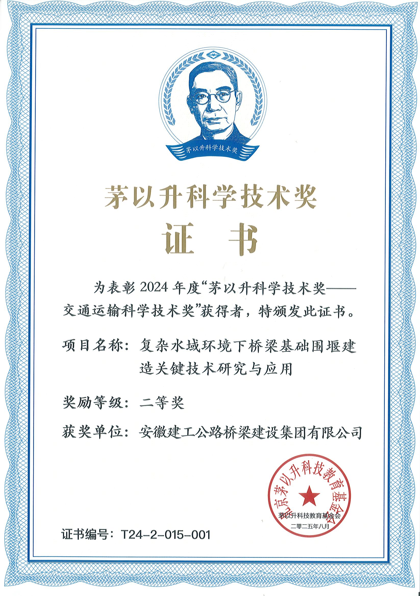 11月19日至21日,首屆道路交通學(xué)術(shù)年會暨“茅以升交通運(yùn)輸科學(xué)技術(shù)獎”頒獎大會在廣西南寧隆重舉行,公司自主申報(bào)的《復(fù)雜水域環(huán)境下橋梁基礎(chǔ)圍堰建造關(guān)鍵技術(shù)研究與應(yīng)用》課題榮獲“茅以升科學(xué)技術(shù)獎-交通運(yùn)輸科學(xué)技術(shù)獎”二等獎。