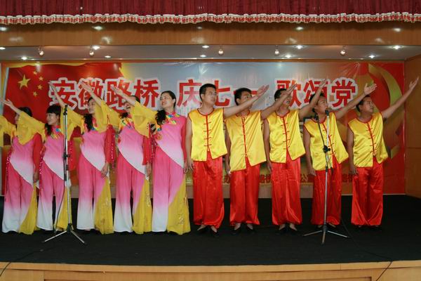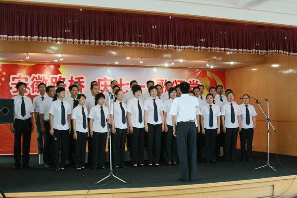 緊接著,慶七一,歌頌黨職工歌詠大賽開始。比賽在路面公司激昂的《沒有共產(chǎn)黨就沒有新中國》合唱聲中拉開序幕,比賽場上,參賽隊員精神飽滿,著裝整齊,懷著對中國共產(chǎn)黨、對祖國的深厚感情,熱情高歌《今天是你的生日我的中國》、《愛我中華》、《歌唱祖國》、《精忠報國》、《咱們工人有力量》、……發(fā)自肺腑的歌聲深深感動了現(xiàn)場觀眾。