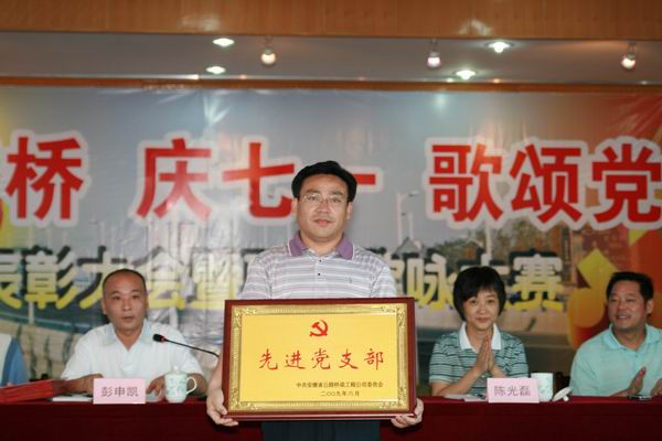 會上,公司黨委委員、總工程師彭申凱同志宣讀了公司黨委《關(guān)于表彰公司2008年度先進黨支部、優(yōu)秀黨務工作者、優(yōu)秀共產(chǎn)黨員的決定》以及《關(guān)于紀念改革開放30周年征文、攝影活動獲獎情況通報》。在歡快的樂曲聲中,公司領(lǐng)導為先進黨支部、優(yōu)秀黨務工作者、優(yōu)秀共產(chǎn)黨員頒發(fā)了獎牌和證書;為征文的獲獎作品頒發(fā)了紀念品。