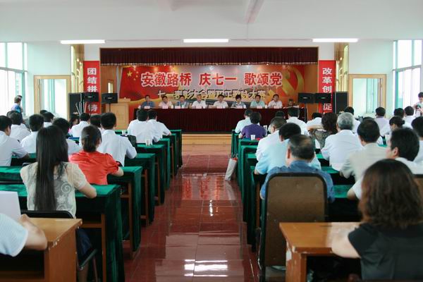 會議在雄壯的《國際歌》聲中開始。黨委書記陳光磊作了《牢記宗旨、珍惜榮譽、勇往直前》激情洋溢的講話。她說:今天我們大家在此歡聚一堂,紀念我們偉大的中國共產(chǎn)黨成立88周年,并對公司2008年度的先進基層黨組織和優(yōu)秀黨員、黨務工作者進行集中表彰。這是一個喜慶的日子,也是一個值得紀念的日子。在此,我謹代表公司黨委對所受表彰的先進單位和個人表示熱烈的祝賀,向公司所有的黨員表示崇高的敬意。接著她深情回顧了黨的光輝歷程,同時要求我們也應該更加自覺地牢記黨的宗旨,在自己的工作崗位上勤奮、踏實、敬業(yè)的工作,為黨徽增光,為黨旗添彩。隨后,陳書記對2008年的黨委工作進行了回顧總結(jié),并對2009年下半年就如何進一步加強黨的建設(shè),深入學習實踐落實科學發(fā)展觀,更好地發(fā)揮黨組織的政治核心作用、戰(zhàn)斗堡壘作用和黨員的先鋒模范作用,提了幾點要求:一、繼續(xù)認真開展學習實踐科學發(fā)展觀活動,充分認清制約公司科學發(fā)展的問題,并有效整改,使公司走上科學發(fā)展的軌道;二、轉(zhuǎn)變觀念,找準黨建工作的“切入點”,積極主動的融入中心工作,充分發(fā)揮基層黨組織的戰(zhàn)斗堡壘作用;三、充分發(fā)揮共產(chǎn)黨員先鋒模范作用,增強號召力、凝聚力、戰(zhàn)斗力。最后,陳書記號召全體黨員把全部心思和精力集中到加快公司發(fā)展上,把各方面的力量凝聚到加快公司發(fā)展上,把共產(chǎn)黨人的先進性體現(xiàn)到加快公司發(fā)展上,以更加飽滿的熱情、更加務實的精神、更加積極的工作狀態(tài)投入到各項工作中去,團結(jié)帶領(lǐng)公司廣大員工,努力把握發(fā)展的大好機遇,為促進安徽路橋的穩(wěn)健發(fā)展做出新的貢獻。