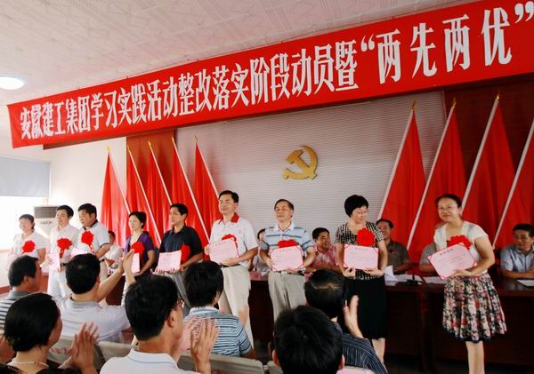 此次獲得集團先進(jìn)稱號的集體、個人具體獲獎情況是:公司黨委榮獲安徽建工集團2008年度“先進(jìn)基層黨委”稱號,橋梁分公司黨支部榮獲安徽建工集團2008年度“先進(jìn)黨支部”稱號,公司高界高速公路改建工程06標(biāo)項目、公司新蚌埠路與北二環(huán)路立交工程項目、公司合肥南一環(huán)暢通工程G標(biāo)段項目分別榮獲安徽建工集團“黨員先鋒號工程”稱號,陳光磊、劉昀榮獲安徽建工集團2008年度“優(yōu)秀黨務(wù)工作者”稱號,沈壯、錢申春、劉冬榮獲安徽建工集團2008年度“優(yōu)秀共產(chǎn)黨員”稱號。