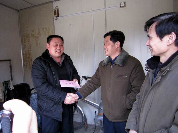 集團公司副總經(jīng)理戴良軍一行慰問公司困難職工 發(fā)布時間:2010年02月04日 來源:工會 發(fā)布人: 作者:胡運春 瀏覽:5175次 2月3日,在這新春佳節(jié)來臨之際,集團公司副總經(jīng)理戴良軍、黨委工作部主任吳曉伍、人力資源部副經(jīng)理朱金蓉一行在公司黨委書記陳光磊等同志的陪同下,先后對四分公司特困職工許來柱和二分公司困難黨員施靜進行了走訪慰問,給他們送去了慰問金,并送上新春的祝福,把黨組織的關(guān)懷、企業(yè)的溫暖送到了他們的家中。