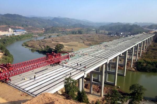 江西大廣B1標(biāo)聶徐桃江大橋全幅架通