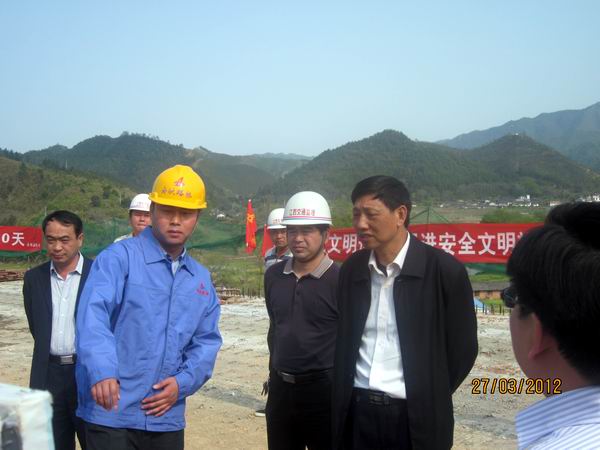 下午15:00,在龍南縣、全南縣領(lǐng)導(dǎo)、贛州高速公司總經(jīng)理溫?fù)P漢、大廣高速龍楊段項(xiàng)目辦主任劉偉勝等相關(guān)領(lǐng)導(dǎo)的陪同下,劉琮一行抵達(dá)我標(biāo)江口大橋施工現(xiàn)場(chǎng)。一下車,劉琮便與我標(biāo)項(xiàng)目經(jīng)理羅權(quán)親切握手并交談。交談中,羅權(quán)向劉琮簡(jiǎn)要匯報(bào)了我標(biāo)整體施工情況。其間,劉琮就施工進(jìn)度、資金調(diào)配、年底通車等問題細(xì)心詢問,羅權(quán)表示,在各級(jí)領(lǐng)導(dǎo)的關(guān)懷與指導(dǎo)下,我標(biāo)在建員工一直發(fā)揚(yáng)著敬業(yè)、開拓、團(tuán)結(jié)、奉獻(xiàn)的安徽路橋精神,規(guī)范項(xiàng)目管理,緊跟施工進(jìn)度,狠抓安全生產(chǎn),嚴(yán)把質(zhì)量控制關(guān),積極做好工程建設(shè),爭(zhēng)取在年底給贛州人民交出一份滿意的答卷,為贛州經(jīng)濟(jì)發(fā)展貢獻(xiàn)綿薄之力。談及安徽路橋,劉琮高度贊揚(yáng),他指出透過大廣高速B1標(biāo)的項(xiàng)目建設(shè),足見安徽路橋在高速施工建設(shè)中管理規(guī)范,施工精細(xì),質(zhì)量過硬,是贛州高速建設(shè)中的守信用、保質(zhì)量的放心企業(yè),是贛州高速建設(shè)的好伙伴。