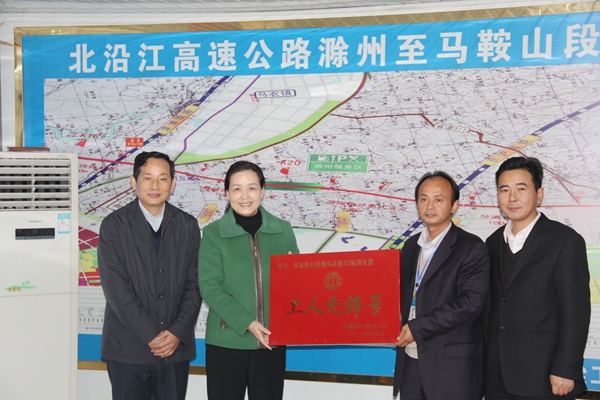 李素萍和牛曙東為該項(xiàng)目“工人先鋒號(hào)”授牌,并到施工現(xiàn)場(chǎng)進(jìn)行了檢查。