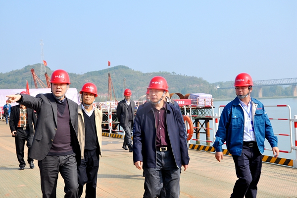 集團董事長、黨委書記趙時運等領(lǐng)導(dǎo)視察黃河特大橋施工現(xiàn)場