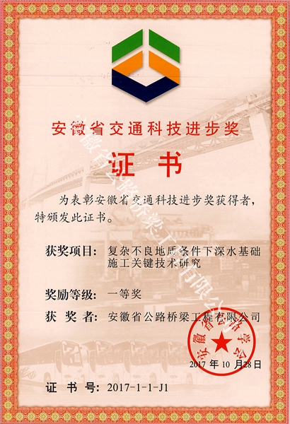 《復(fù)雜不良地質(zhì)條件下深水基礎(chǔ)施工關(guān)鍵技術(shù)研究》是以濟(jì)祁淮河特大橋基礎(chǔ)施工為背景,深入研究了樁基施工到圍堰施工一體系成套基礎(chǔ)施工關(guān)鍵技術(shù),創(chuàng)新式的改進(jìn)結(jié)構(gòu)及施工工藝使得體系結(jié)構(gòu)受力合理。該施工技術(shù)及理論從實(shí)踐中總結(jié)得出,并在項(xiàng)目施工中成功驗(yàn)證。2017年7月,經(jīng)中國(guó)公路建設(shè)行業(yè)協(xié)會(huì)組織的專家鑒定,該技術(shù)成果達(dá)到國(guó)際先進(jìn)水平?!洞笄输摌蛎驿佈b雙層高粘SMA瀝青瑪蹄脂碎石施工技術(shù)》重點(diǎn)對(duì)大曲率鋼橋的安裝施工方法進(jìn)行了描述,同時(shí)橋面鋪裝施工首次采用基質(zhì)瀝青添加直投式RST高粘瀝青改性劑,采用特殊的礦料級(jí)配,結(jié)合靜態(tài)碾壓工藝,成功解決了鋼橋面變形性能導(dǎo)致的壓實(shí)度不易控制的難題,有效提高了施工質(zhì)量。2017年7月,經(jīng)專家鑒定,該技術(shù)成果達(dá)到國(guó)內(nèi)先進(jìn)水平。