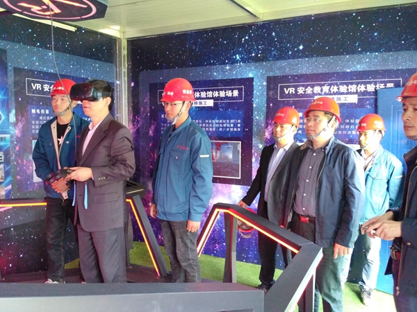 王總在VR安全體驗(yàn)館親身體驗(yàn)
