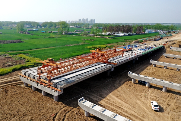 蒙城PPP項目施工戰(zhàn)線較長,分部分項工程繁多復雜。為了實現達產超產目標,項目將復雜工程細化分解,加速開拓施工面。項目團隊提出“新工作面適時開啟、舊工作面不斷推進”的工作思路,多點發(fā)力搶工期、提產值。4月初,渦河五橋南岸主線中面層瀝青開始攤鋪,比原定計劃提前了7天。4月12日,渦河特大橋第一聯右幅最后一片預制箱梁在現場管理人員的精準指揮下順利架設安裝就位,為推進上部結構順利完成施工奠定了基礎。3月份以來,路面部分施工實際完成產值是計劃產值的123%,超額完成目標任務。