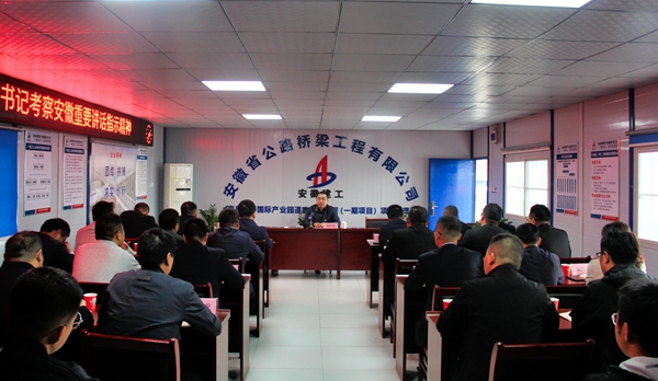 在全省上下深入學(xué)習(xí)宣傳貫徹習(xí)近平總書記考察安徽重要講話指示精神之際,按照集團黨委統(tǒng)一部署要求,結(jié)合領(lǐng)導(dǎo)班子成員黨支部工作聯(lián)系點制度,10月16日下午,公司黨委副書記、總經(jīng)理錢申春深入道路分公司壽縣新橋產(chǎn)業(yè)園道路擴展工程項目部宣講習(xí)近平總書記考察安徽重要講話指示精神。他強調(diào),要充分認(rèn)識習(xí)近平總書記考察安徽重要講話指示精神的重大意義,推動學(xué)習(xí)宣傳貫徹工作走深走實,確保習(xí)近平總書記重要講話精神在項目一線得到全面貫徹落實,進而轉(zhuǎn)化為推動項目生產(chǎn)經(jīng)營管理的強大動力和生動實踐。