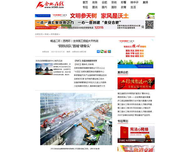 安徽路橋公司承建的暢通二環(huán)(西南環(huán))工程是目前合肥市最重要的市政工程之一。自項目建設以來,備受社會各界的高度關注。特別是在春節(jié)期間,項目鉚足干勁、大干正酣的諸多場景,得到人民網(wǎng)、中國日報、學習強國、安徽衛(wèi)視、中安在線、安徽網(wǎng)、新安晚報、澎湃新聞、合肥日報等眾多媒體的全方位、多角度報道。