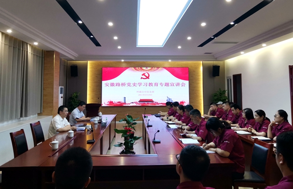 會上, 錢申春通報了公司黨史學(xué)習(xí)教育開展情況,并圍繞“學(xué)習(xí)黨的百年歷史,傳承發(fā)揚奮斗精神”“深刻認識公司改革發(fā)展歷程及近年來取得的主要成績,切實增強品質(zhì)路橋卓越路橋建設(shè)的信心決心”“扎實推進黨史學(xué)習(xí)教育,為公司“十四五”發(fā)展凝聚強大力量”三個方面作了宣講。