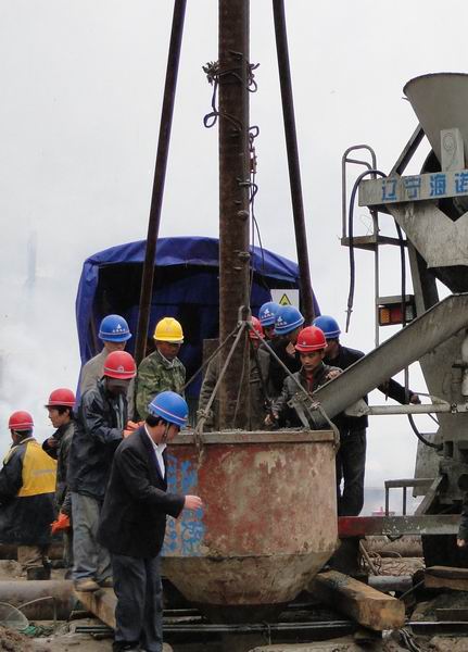 11月10日上午10時(shí),我項(xiàng)目部所屬的皂角樹(shù)特大橋(總長(zhǎng)1506.08米)60號(hào)橋墩2號(hào)樁基正式澆注。該樁基樁長(zhǎng)21米,樁徑1.5米,所用混凝土為C30水下混凝土,這是宜巴高速第二高監(jiān)辦所轄5個(gè)標(biāo)段內(nèi)第一根開(kāi)始澆注的樁基。宜巴高速指揮部、第二代表處及高監(jiān)辦的領(lǐng)導(dǎo)對(duì)此高度關(guān)注,在我標(biāo)段橋梁一工區(qū)見(jiàn)證了樁基澆注全過(guò)程。在澆注施工前項(xiàng)目部也做了充分的準(zhǔn)備工作,所有工序均是高標(biāo)準(zhǔn),嚴(yán)要求,嚴(yán)格按照規(guī)范施工?!暗谝粯丁钡某晒沧⒃诤背浞终故玖税不章窐蛉丝茖W(xué)嚴(yán)謹(jǐn)?shù)氖┕ぞ瘛?SPAN lang=EN-US>