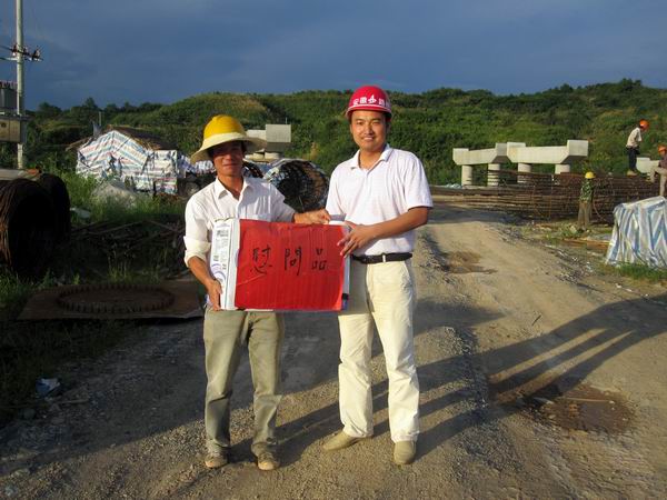 入夏以來,黃祁高速公路建設(shè)沿線地區(qū)持續(xù)高溫,廣大項(xiàng)目員工冒著高溫酷暑始終堅(jiān)守在一線,為加快施工進(jìn)度而不懈努力。2010年7月18日下午,我部項(xiàng)目經(jīng)理黃華及項(xiàng)目部主要管理人員深入施工現(xiàn)場,慰問廣大員工,檢查各工區(qū)施工隊(duì)伍防暑降溫工作的開展情況,并將防暑降溫用品發(fā)放到各工區(qū)施工隊(duì)。