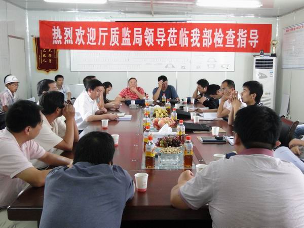 劉軍首先主持召開質(zhì)量安全檢查布置會(huì)議,簡要的介紹本次質(zhì)量安全檢查的內(nèi)容和分工。項(xiàng)目經(jīng)理王遠(yuǎn)勝向檢查組一行就我部施工進(jìn)度、質(zhì)量、安全、環(huán)保、內(nèi)業(yè)管理和目前施工存在的困難進(jìn)行專門匯報(bào)。