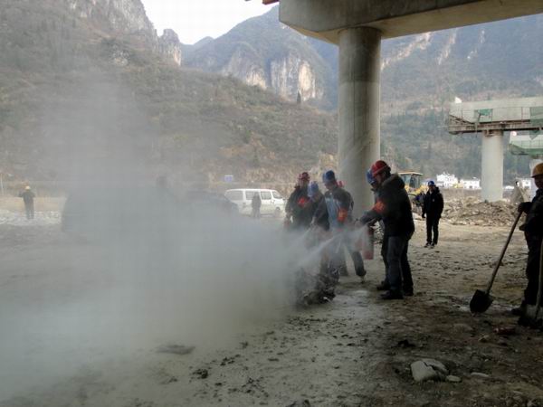 為加強(qiáng)冬季防火安全工作,1月16日,宜巴09標(biāo)在橋梁一工區(qū)組織進(jìn)行防火演練,以檢驗(yàn)并增強(qiáng)我部發(fā)現(xiàn)安全隱患、及時(shí)處理的應(yīng)急能力。本次演練由項(xiàng)目部分管安全工作的黨支部書記邵建新?lián)慰傊笓],安全部部長(zhǎng)萬和國(guó)擔(dān)任現(xiàn)場(chǎng)指揮,項(xiàng)目總工、各工區(qū)區(qū)長(zhǎng)和現(xiàn)場(chǎng)施工班組負(fù)責(zé)人到場(chǎng)參與演練。