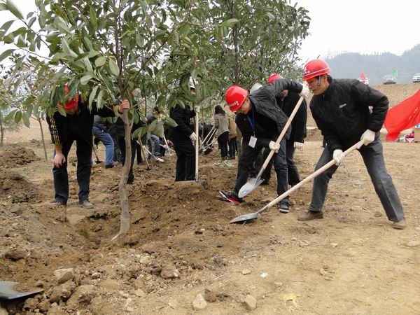 10日上午,項目黨支部書記邵建新、總工吳昊參加指揮部2011年在霧渡河互通的植樹造林活動,接力2010年植樹活動,再次種下三顆樹苗。11日,項目部購進(jìn)具有觀賞性、成活率較高的紅葉石欄幼苗50株,環(huán)保部組織全體人員一人一顆在路基工區(qū)k62+600處高邊坡段種植。盡管地形陡峭、取水極不方便,大伙兒積極克服困難,分工合作,運(yùn)樹苗、挖坑、種樹、運(yùn)水、澆水,有序進(jìn)行,經(jīng)過2小時努力,順利種下全部樹苗,為綠化宜巴、共建綠色家園貢獻(xiàn)力量。