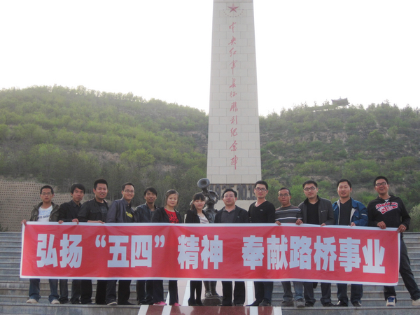 為不影響施工生產(chǎn),活動選擇在下午6點進行。項目經(jīng)理帶領(lǐng)全體青年團員前往吳起縣中央紅軍與陜北紅軍會師地吳起縣中央紅軍革命紀(jì)念園,接受紅色教育。項目部全體青年團員順著革命先輩踏過的臺梯,一步步的登上中央紅軍長征勝利紀(jì)念碑的腳下,共同拉著“弘揚五四精神奉獻路橋事業(yè)”的宣傳標(biāo)語進行合影留念。