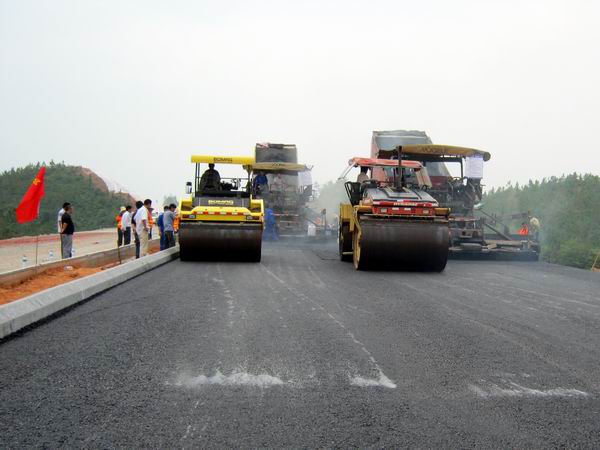 為了確保此次試驗(yàn)段的順利攤鋪,項(xiàng)目部研究制定了詳細(xì)的施工方案,并提前召開了專項(xiàng)方案技術(shù)交底會(huì),對(duì)施工工藝流程、施工組織安排及注意事項(xiàng)等進(jìn)行了詳細(xì)的交底。28日早上,在項(xiàng)目領(lǐng)導(dǎo)的精心安排和組織下,我部工程技術(shù)人員和作業(yè)人員對(duì)瀝青試驗(yàn)段攤鋪現(xiàn)場和瀝青拌和站進(jìn)行準(zhǔn)備工作和設(shè)備最后檢查。上午11時(shí),伴隨著陣陣鞭炮聲,此次瀝青試驗(yàn)段按照預(yù)先計(jì)劃順利攤鋪,現(xiàn)場機(jī)械在指揮人員的引導(dǎo)下有條不紊的作業(yè)。最終經(jīng)過我部廣大施工作業(yè)人員的齊心努力,下午18時(shí)順利完成此次ATB-25瀝青碎石上基層試驗(yàn)段的攤鋪。