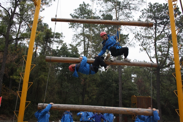 在培訓(xùn)基地,學(xué)員被隨機分為三組,通過民主討論選出各自的隊長、隊名、隊歌和口號。在隨后的拓展培訓(xùn)中,三組隊員依靠團(tuán)結(jié)協(xié)作、頑強拼搏、毫不畏懼的精神順利完成了“背摔、斷橋、天梯、空中單杠、求生墻”等挑戰(zhàn)性項目,通過這些項目的挑戰(zhàn),經(jīng)過帶訓(xùn)老師針對性的啟發(fā)和指導(dǎo),使廣大學(xué)員加深了對團(tuán)隊協(xié)作、互助互信的理解,達(dá)到了挑戰(zhàn)自我、熔煉團(tuán)隊、提升溝通與合作的目的。
