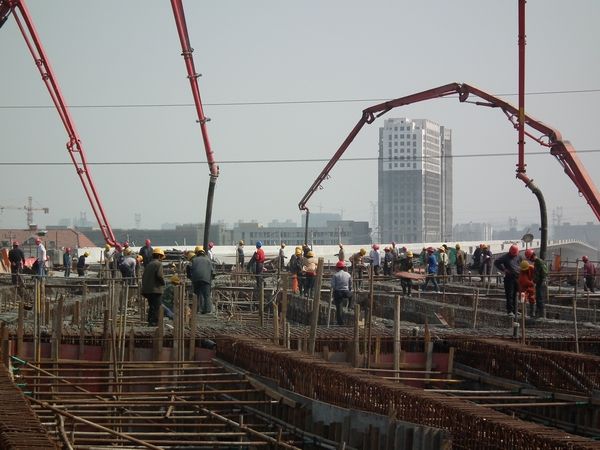 在澆筑過(guò)程中,項(xiàng)目部技術(shù)員全部上陣,并一直堅(jiān)持到結(jié)束,休息和三餐全部在澆筑現(xiàn)場(chǎng)解決。安全管理人員也全部到場(chǎng),5名安全員分別把守著高壓線四端,確保澆筑安全距離,防止輸送泵車的大臂觸電。項(xiàng)目部和監(jiān)理部主要負(fù)責(zé)人也在場(chǎng)檢查、督導(dǎo)澆筑質(zhì)量和安全。