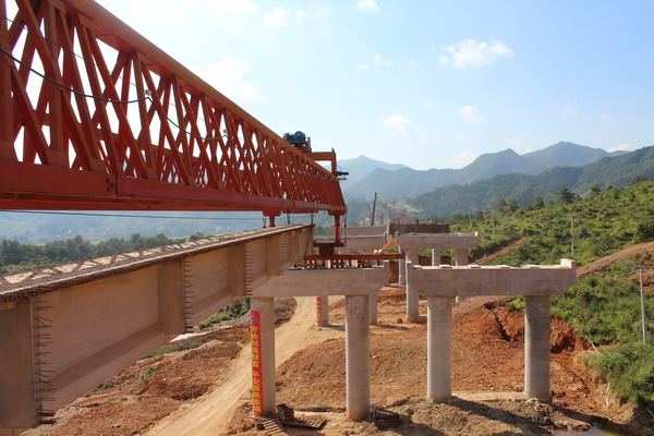 昌寧高速C5標(biāo)完成龍坊高架第一片40米T梁架設(shè) 發(fā)布時(shí)間:2014年09月18日 來(lái)源:昌寧高速C5標(biāo) 發(fā)布人: 作者:王振堂 瀏覽:2782次 9月18日上午9時(shí)18分,昌寧高速公路C5標(biāo)龍坊高架第一片40米T梁順利架設(shè)成功,標(biāo)志著作為全線控制性工程的龍坊高架橋進(jìn)入了上部施工階段,極大地提振了項(xiàng)目部全體員工和參建隊(duì)伍的戰(zhàn)斗精神。